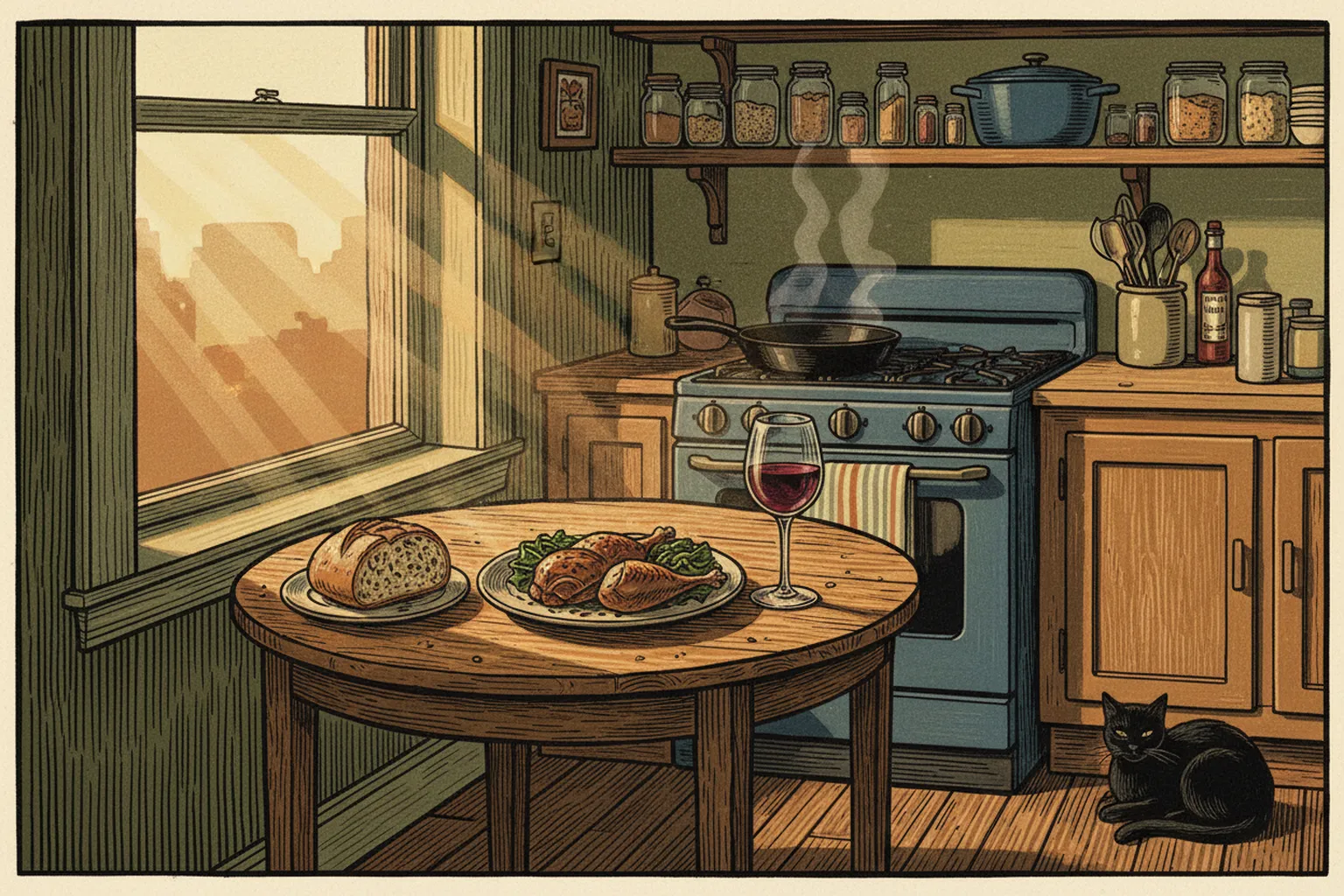 So I did. I put a plate down and a fork and a glass of water and I sat and ate in the quiet and the evening light, and it was fine. It was better than fine. It was the first time in a long time that the meal felt like a meal and not like an errand.